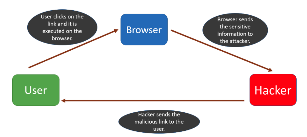이 경우의 공격은 해커가 유저에게 악성 스크립트가 담긴 링크를 클릭하게 함으로써 실행된다.