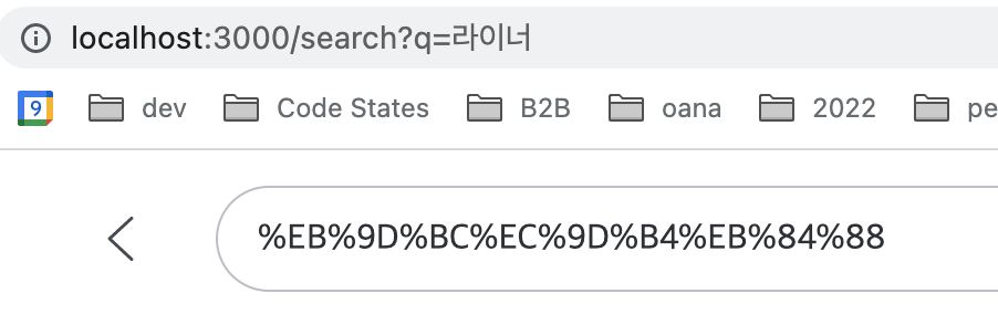 const queryString = decodeURI(location.search.slice(3));이렇게 설정함으로서 해결!