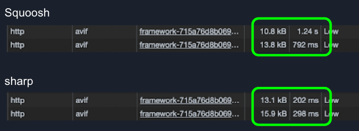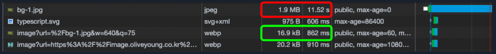 - sharp를 설치하면 기존 squoosh를 활용한 이미지 최적화 결과보다 훨씬 빠른 응답을 받을 수 있음.