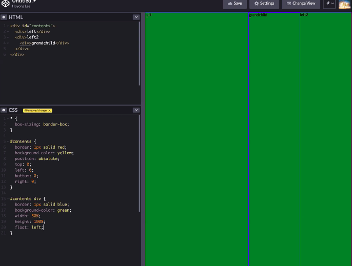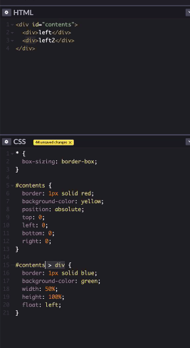 이 때 자식 element의 height를 부모에게 반영하는 방법은 부모 element에 overflow:auto 또는 overflow:hidden 속성을 부여하는 방법이 있다. (float 해제라고 구글링하면 찾을 수 있다.)