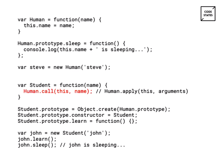 class Human { constructor(name) { this.name = name; } sleep() { console.log('zzz') } } let john = new Human('john'); class Student extends Human { constructor(name){ super(name); } learn() { console.log('study hard') } } let oana = new Student('oana'); john.sleep(); // 'zzz' oana.learn(); // 'study hard' oana.sleep(); // 'zzz'그런데 객체지향에서는 다형성이라는 특징이 있다!
