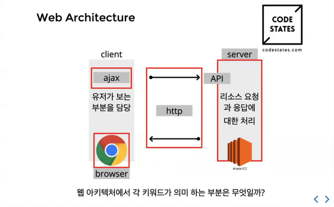 앞서 설명한 그림에 따르면 웹 아키텍쳐는 크게 클라이언트 - 서버 - 데이터베이스로 나뉘는데